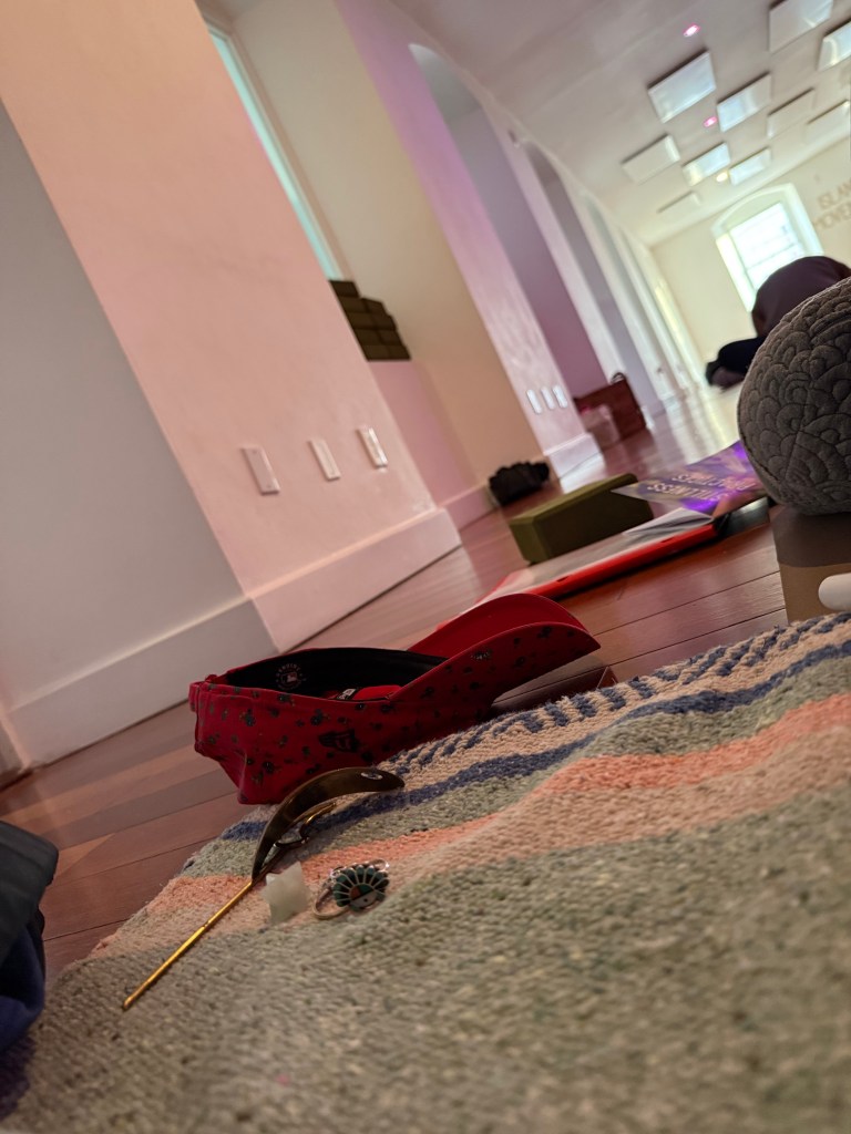 Of all of the first day pics, this one…. best represents where I was. In the back of the studio, with my backpack – half in travel clothes / half in new yoga top… tired and curious, excited and ready… rings off, hat off, expectations totally off.